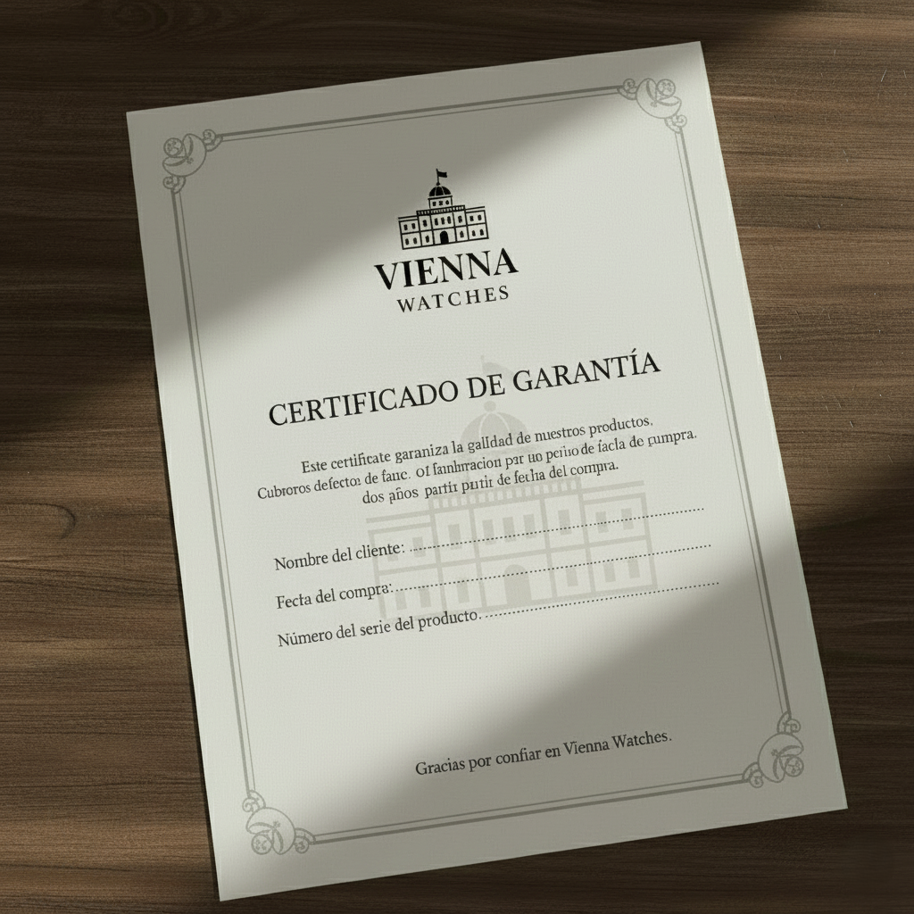 Tu reloj tiene un certificado de dos años de garantía, que se solicita digitalmente a través de WhatsApp.